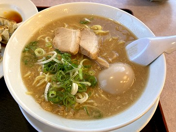 スープはあっさりした鶏がら、トンコツもあります。麺は細めのちぢれ麺。こってり味のラーメンが多い中、あっさりしたスープはあっさり好みの人にはいいかも。具もチャーシュー、スライスした煮卵、鳴門、もやし、海苔、ねぎがバランスよく入っています。ラーメン以外では、 ギョーザ・チャーハン・春巻などのほか、カエルの唐揚げなんてメニューもあります。