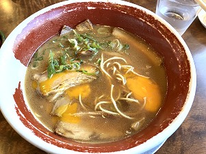 醤油らーめん、塩らーめん、味噌らーめん、とんこつらーめんなどが選べます。麺は程よい太さちぢれ麺。バター、コーン、チャーシュー、わかめ、メンマ、山菜などもトッピングできます。チャーシュー・味付け玉子が入ってる「とくもり」\880.がおすすめです。鶏ガラベース醤油味の昔の中華そば \600.やピリ辛の台湾そば \600.をはじめメニューも豊富。パティオ内各所にあるクーポン券を使用すると学生さんは大盛かアイスクリームのサービスあり。